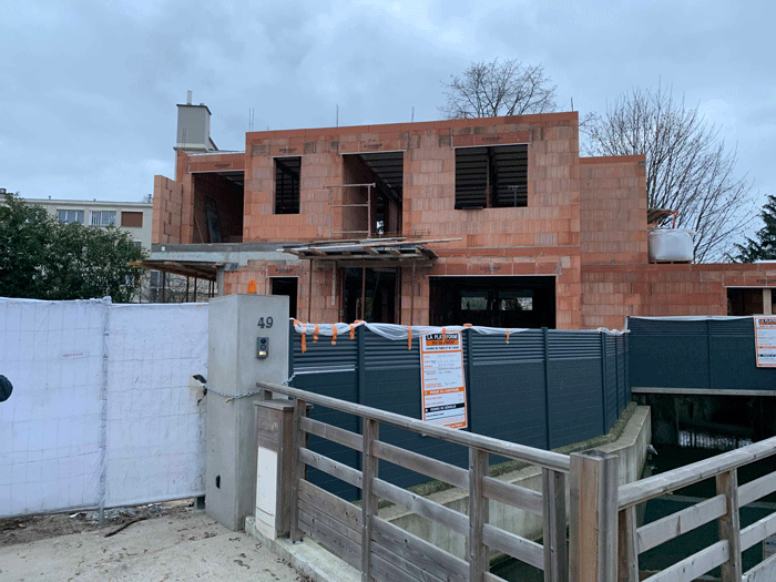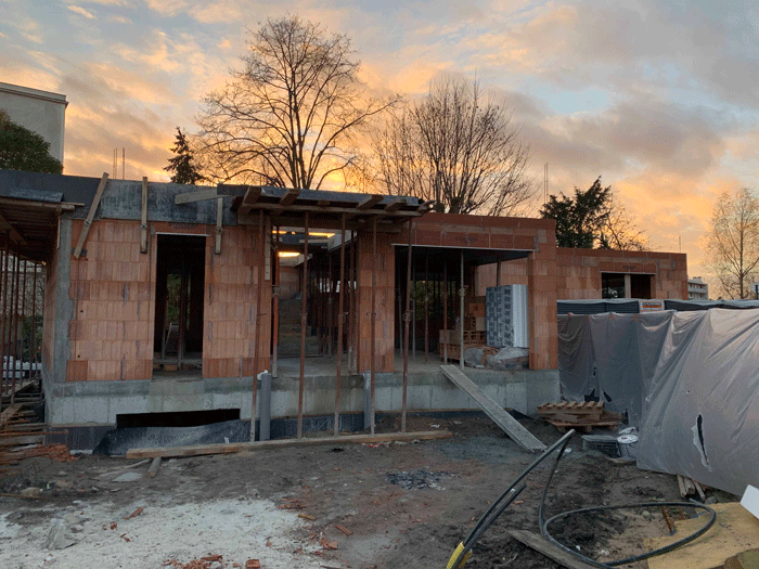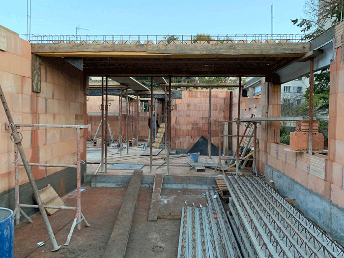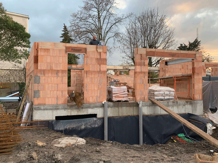 Construction en bloc à bancher pour le sous sol et en Brique pour le RDC et l'étage.